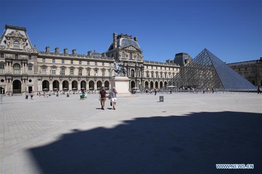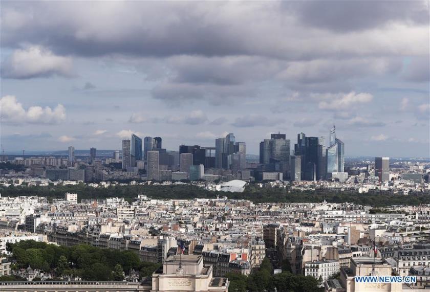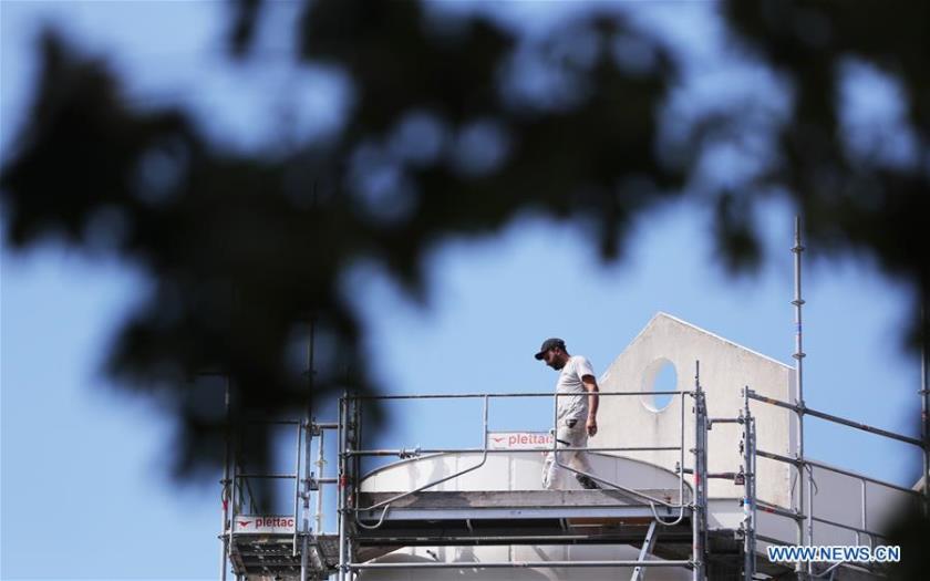 A worker is seen at a construction site in Clichy, near Paris, France, Aug. 8, 2020. France's economy contracted by 13.8 percent in the second quarter (Q2) after household consumption and investment, the country's main growth engines, tumbled under severe economic fallout from anti-coronavirus lockdown, national statistics institute (INSEE) said on Friday.