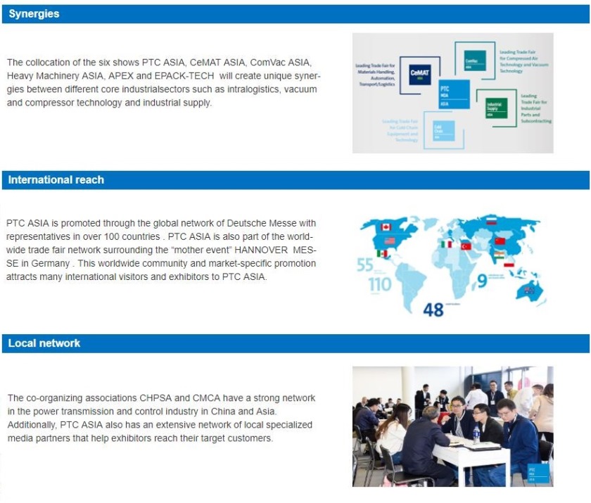Since it was first held in 1991, PTC Asia has developed from one session every two years to one session every year. The exhibition area and contents of the exhibits have been continuously expanded, and the number of professional visitors has multiplied, which has greatly promoted the international exchange of power transmission and control technology market and the development of trade market. The exhibition not only provides opportunities for many international brands to enter the Chinese and Asian markets, but also brings an excellent platform for global procurement to the Chinese market.